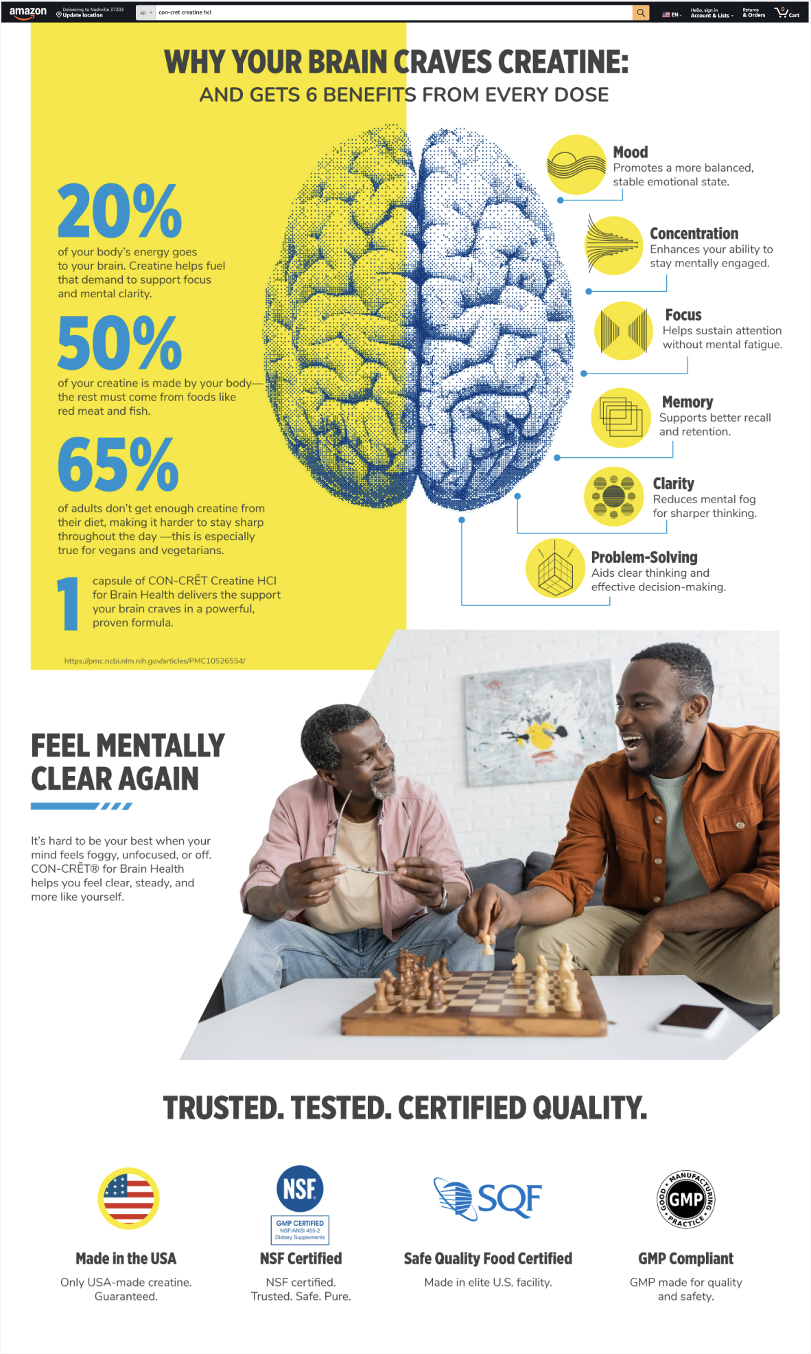 Supplements are a crowded, confusing category- packed with claims, science jargon, and hard-to-read labels. Con‑Cret needed a fresh visual language to help customers understand benefits quickly and navigate choices, especially online.